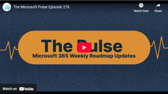 Episode 274 of the Microsoft 365 Pulse Roadmap webcast is now out on YouTube. Join Tamara Bredemus, Matthew Ruderman, and Thomas Duff as we cover this week’s updates.