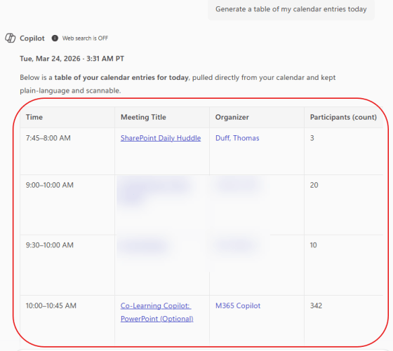 One of the recent Copilot changes is the ability to copy AI-generated tables from Copilot and paste them in other M365 applications. I guess I just assumed that would always be possible, but I had never tried it before. Here’s how it works…