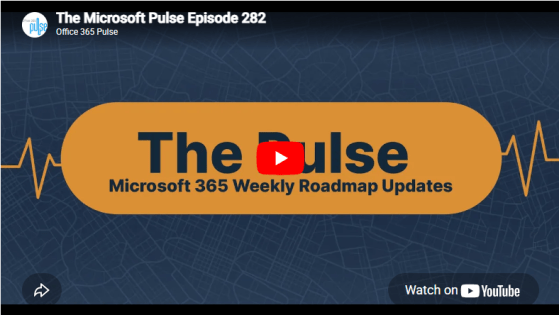 Episode 282 of the Microsoft 365 Pulse Roadmap webcast is now out on YouTube. Join Jennifer Mason, Tamara Bredemus, Matthew Ruderman, and Thomas Duff as we cover this week’s updates.