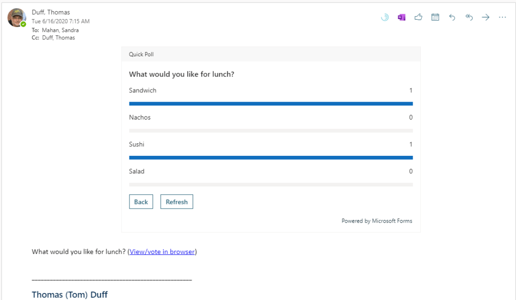 Just an FYI… the poll is actually powered by Microsoft Forms, so you’ll need to have access to Forms in order to make this work.