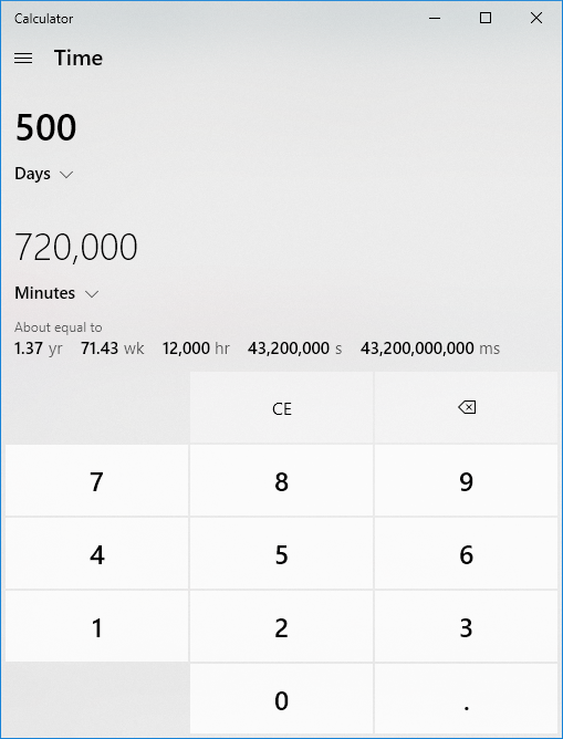 Need to know how many minutes are in a particular number of days? Here you go:
