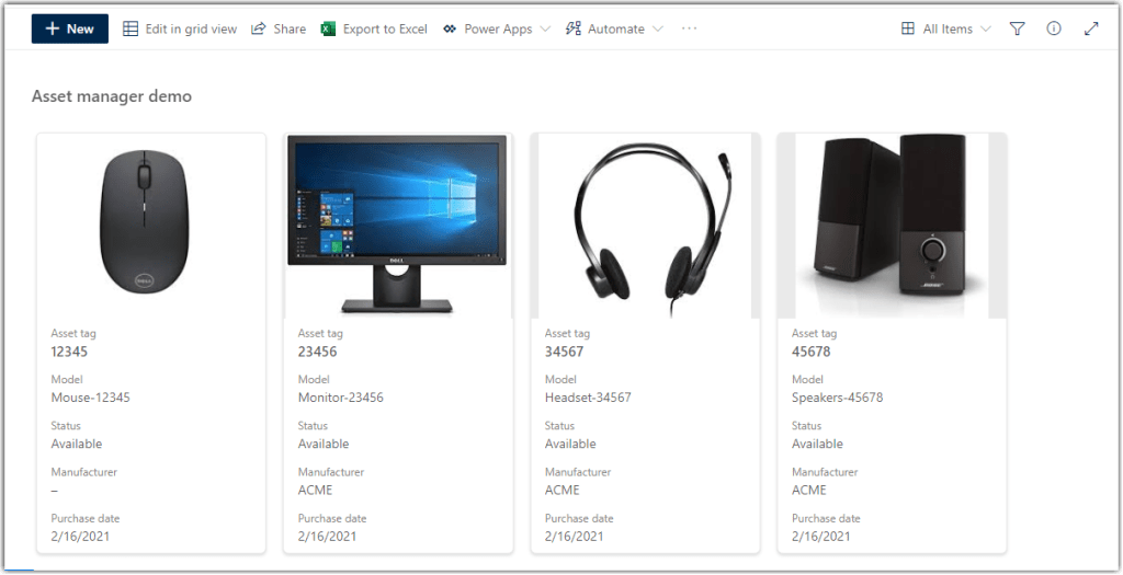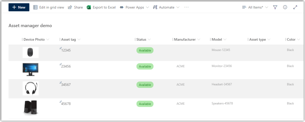 Here we have an Asset Manager list that shows the device image and various pieces of information about the device. We’re using a normal view to start with: