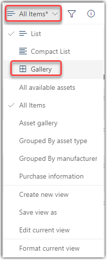 To change the view to Gallery format, click on All Items > Gallery: