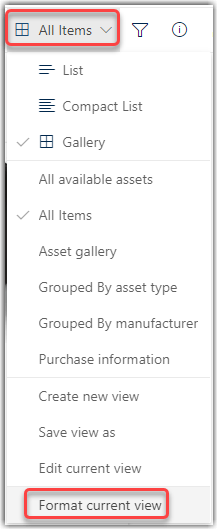 If you want to permanently change this particular view to be displayed in the Gallery format, make sure to use the Save view as option to save your overall changes: