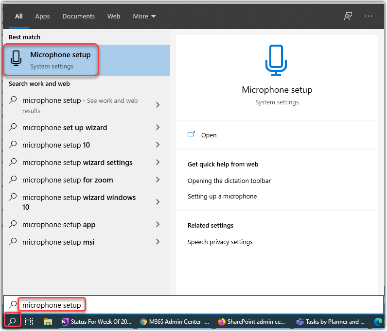 Now for the caveat… I tried doing this with my Jabra headset, thinking the mic would pick up my words. Unfortunately, nothing happened. I had to go into the Microsoft setup feature in Windows:
