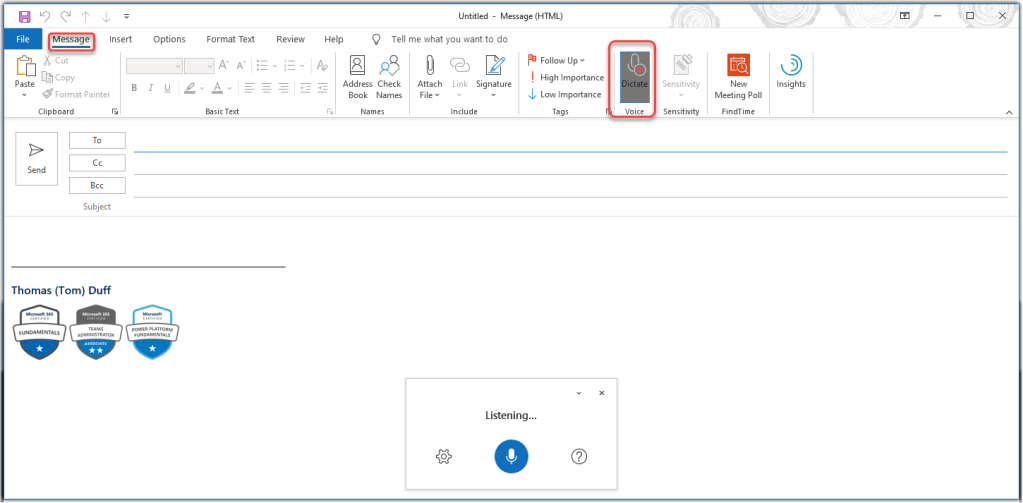 While I prefer to write emails and documents using my keyboard, there are some people who prefer (or need) to use voice dictation to get “words on paper.” Fortunately, there’s a Dictate feature in Word and Outlook for Windows that makes that easy. Here’s how it works…