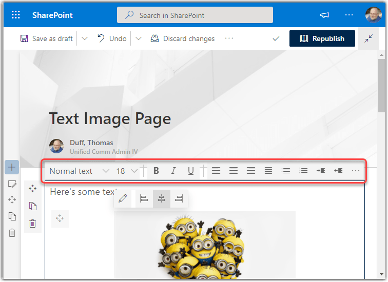 When working with SharePoint Online modern pages, you used to get only a limited number of options in the Text web part toolbar. To get the whole list of options, you had to open the Properties pane on the right side of the page. Now, you can access all the text properties from the toolbar. Here’s how that looks…