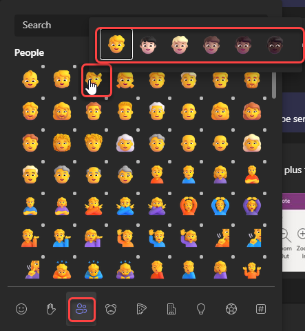 Another change that hit my Microsoft Teams desktop client is the change to the emoji palette. Instead of the flat 2D emoji, they are now “3D” and have some depth. The formal name that Microsoft calls the styling is Fluent emoji. Here’s what they look like, as well as hidden trick for the people emojis…
