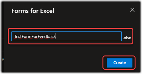 Give the Excel file a name. This will be the name of your Form. Click Create to open your Form: