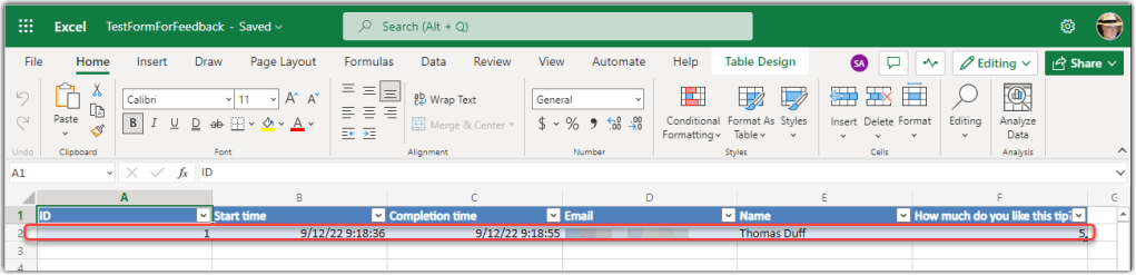 When you open up the spreadsheet, you’ll see your responses have been stored in real time… no more manual exporting!