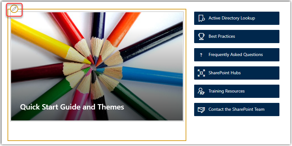 When I look at the Hero web part, I see the Edit icon in the upper-left corner: