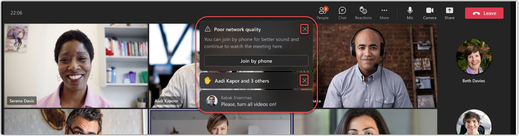 In this example from Microsoft, you’ll see that all the meeting notifications are now across the top and centered. As new notifications show up, they appear below the last one. And… closing a message is consistent: