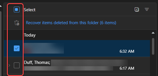 It used to be that in Outlook on the web, you’d see round circles that you could select to perform actions on an email item, such as deleting one or more emails. Microsoft has made a bit of a change in how that now displays and what you need to do to get the circles to appear. Here’s how it works now…