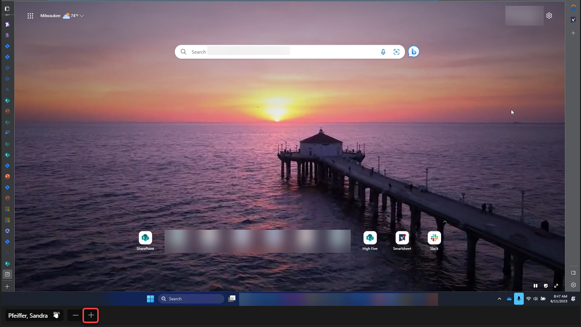 In this example, Sandra is sharing her screen with me. I would like to zoom in on some section of the screen for more detail. In the lower left corner, there’s now a plus icon that will zoom you in up to 200%: