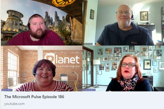 Episode 186 of the Microsoft 365 Pulse Roadmap webcast is now out on YouTube. Join Tamara Bredemus, Jennifer Mason, Adam Ochs, and myself as we cover this week’s updates.