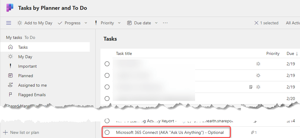 Now when I go to To Do (or Tasks by Planner and To Do in Teams), I see that the title of that video has been added to my To Do list, and I can open up the item and put a date associated with when I want to watch it: