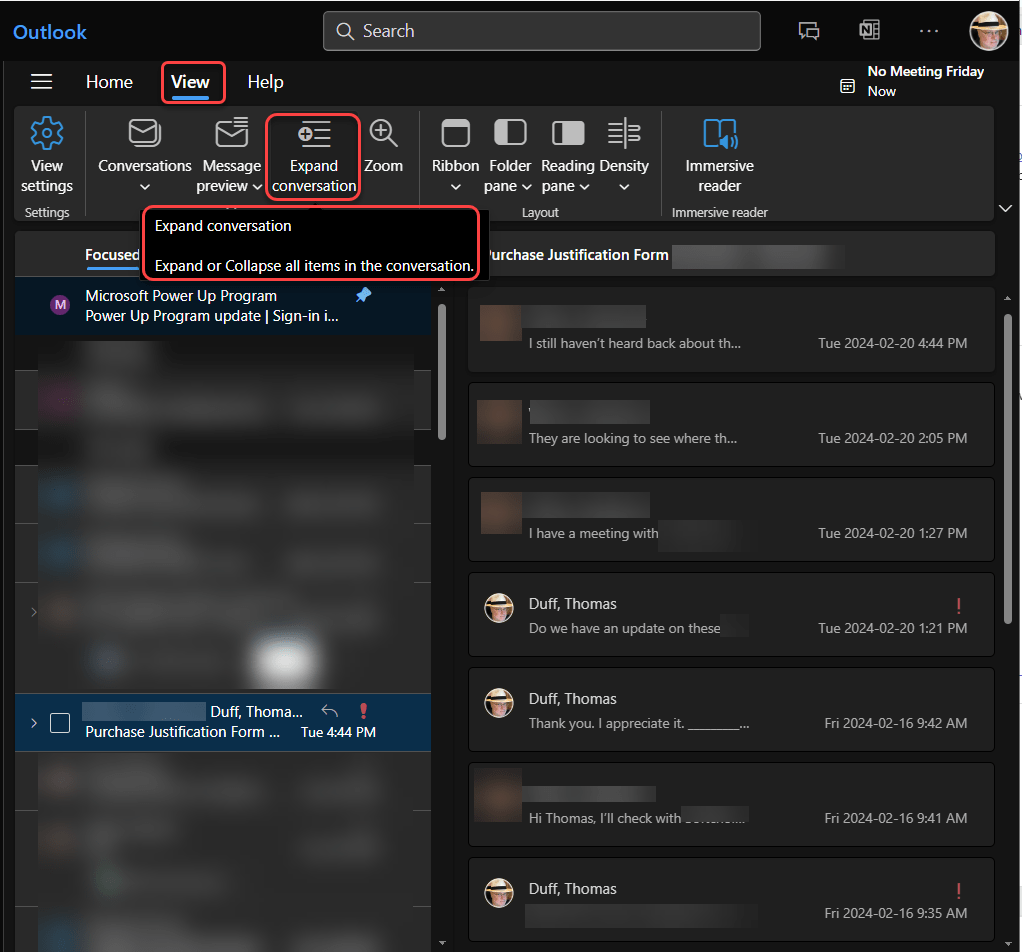 It’s not uncommon to have emails that are grouped by conversation. However, it can be a pain to manually click on each email to expand it. If you’re using Outlook on the web, you can use the Expand and Collapse conversation button in the menu bar to make that a lot easier. Here’s how it works…