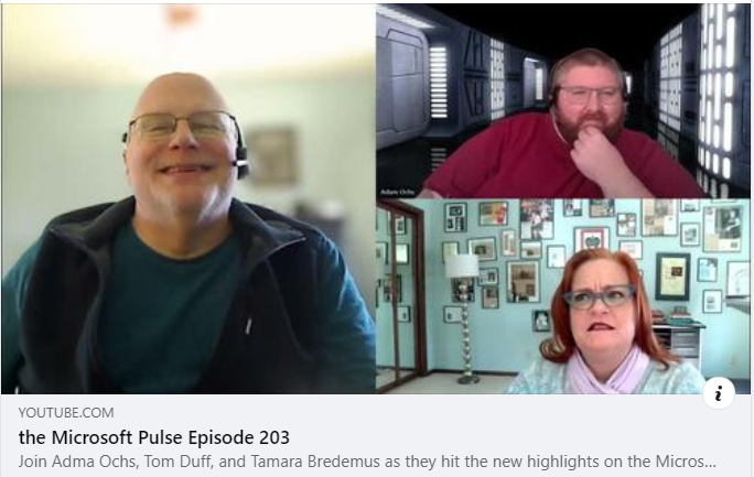 Episode 203 of the Microsoft 365 Pulse Roadmap webcast is now out on YouTube. Join Adam Ochs, Tamara Bredemus, and myself as we cover this week’s updates.