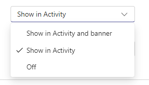 For the two options (New invites and forwarded meetings), you’ll see the following options that you can select. Select Off if you don’t want to see that information show up anywhere in your Teams client. That will reduce the amount of pop-up and posting distractions: