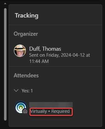 Finally, in the meeting each attendee who has been invited will also show whether they’ll be attending virtually or in-person: