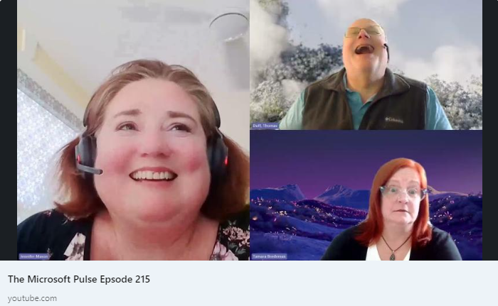 Episode 215 of the Microsoft 365 Pulse Roadmap webcast is now out on YouTube. Join Jennifer Mason, Tamara Bredemus, and myself as we cover this week’s updates.