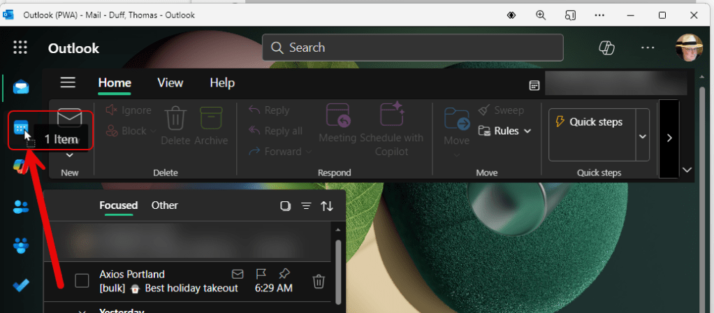 This may be a new trick for some of you… In the classic Outlook client, you can drag an email over to the calendar icon on the left-side navigation bar, and Outlook will automatically create a calendar entry using that email content. Unfortunately, you didn’t have that same ability if you were using Outlook on the web or the New Outlook client. Now you can! Here’s how that works using Outlook on the web, and you should be able to do the same in the New Outlook client…