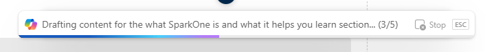 Across the bottom of the screen, you’ll see Copilot walking through the creation of the page and where it’s at in the process: