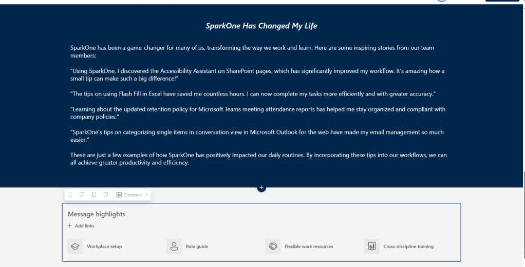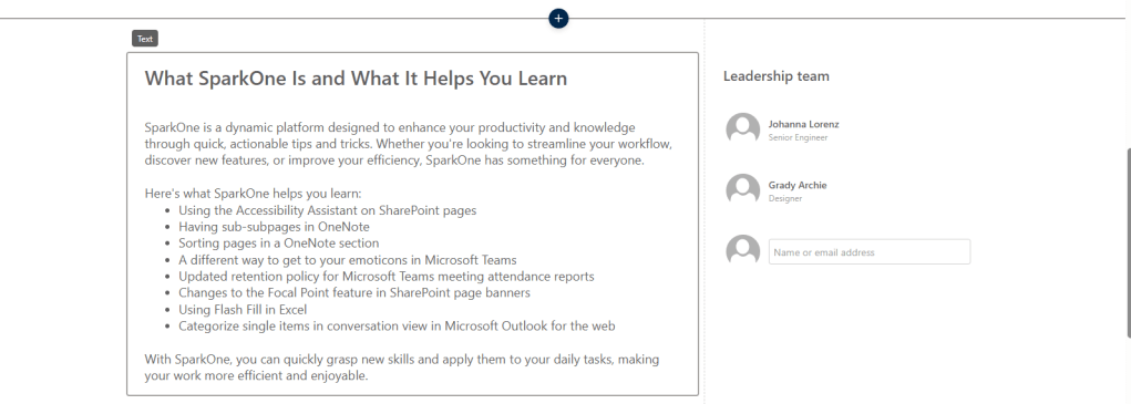 Let’s be clear… this is not a page that you’d hit Publish and go with it “as is”. Obviously it made up some quotes, summarized information, and so forth. But… two minutes ago, you were still staring at a blank screen with no good ideas on how to proceed. Copilot has given you a great starting point for layout and content, and now you can go back and start working on content that more actively reflects the information you want to convey.