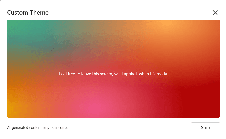 By going out to Settings, I selected General > Appearance. Under Modern themes, I clicked on the first option which allows you to build a Copilot-generated theme: