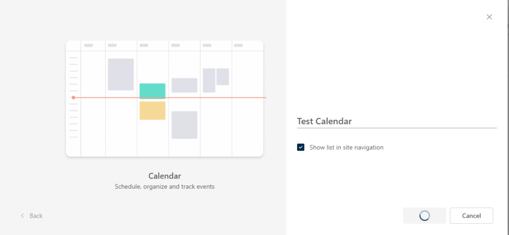 In this example, I selected the blank Calendar option. It lets me name the list and then create it: