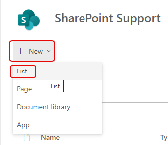 To get started, go to the Site Contents option in the SharePoint settings and select New > List: