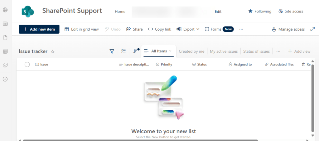Once you click Use template, it creates the list for you along with the underlying form. You’re now ready to start: