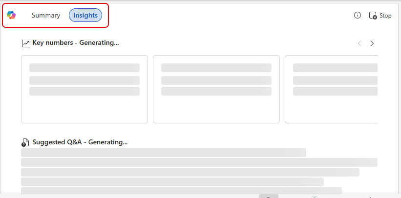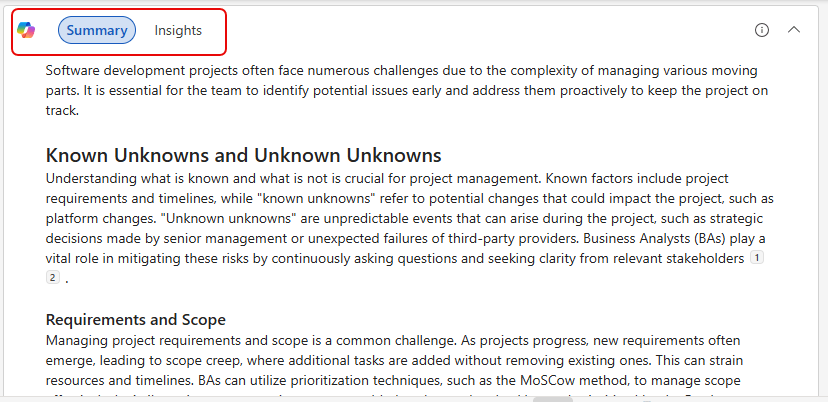 Copilot provides two sections… the first is a one page summary of the document so that I have an overview before I decide on reading the whole thing:
