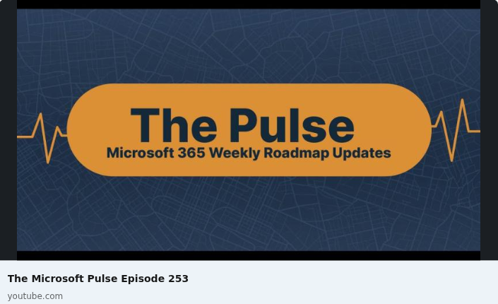 Episode 253 of the Microsoft 365 Pulse Roadmap webcast is now out on YouTube. Join Tamara Bredemus and Thomas Duff as we cover this week’s updates.