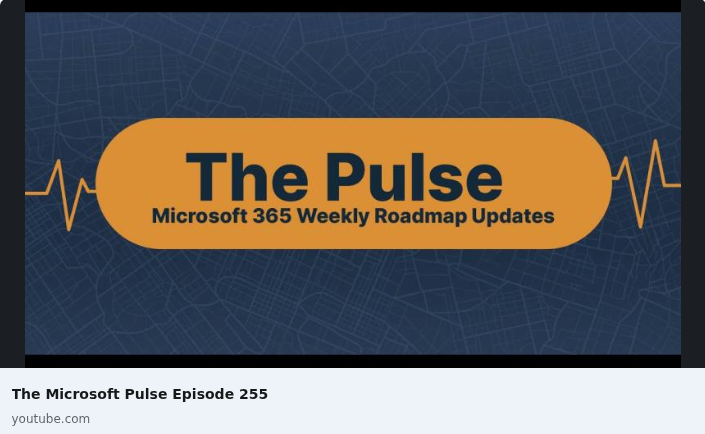 Episode 255 of the Microsoft 365 Pulse Roadmap webcast is now out on YouTube. Join Jennifer Mason, Tamara Bredemus, and Thomas Duff as we cover this week’s updates.