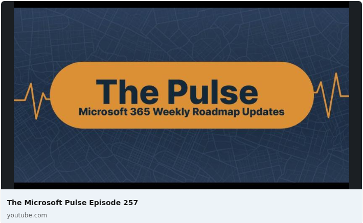 Episode 257 of the Microsoft 365 Pulse Roadmap webcast is now out on YouTube. Join Tamara Bredemus and Thomas Duff as we cover this week’s updates.