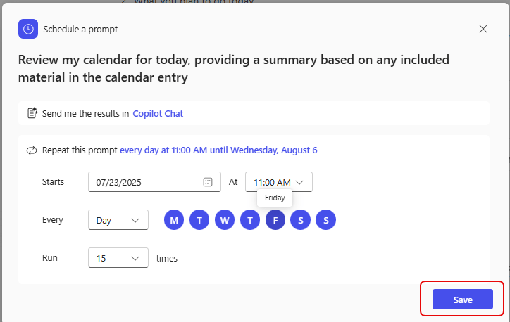 As a regular user of Copilot, you may have certain prompts that you run every day, such as “summarize my inbox” or “review my calendar”. You can save those prompts and run them manually, but now you have an additional option… setting them up as a scheduled prompt. Here’s what that looks like and how it works…