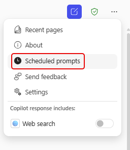 If you want to see all your scheduled prompts, click on the ellipsis in the upper-right corner and select Scheduled prompts: