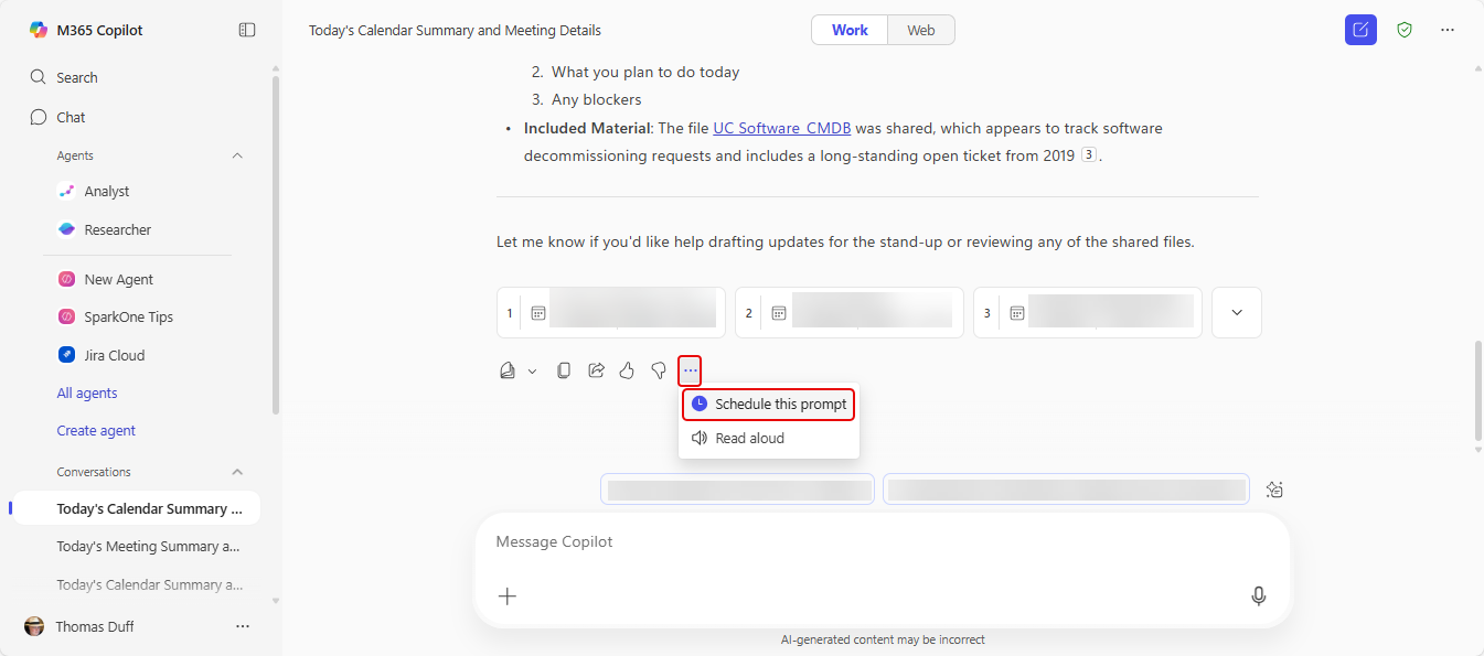 As a regular user of Copilot, you may have certain prompts that you run every day, such as “summarize my inbox” or “review my calendar”. You can save those prompts and run them manually, but now you have an additional option… setting them up as a scheduled prompt. Here’s what that looks like and how it works…