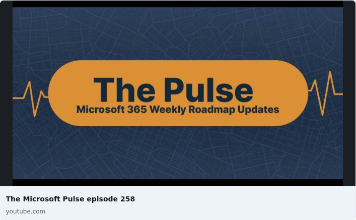 Episode 258 of the Microsoft 365 Pulse Roadmap webcast is now out on YouTube. Join Tamara Bredemus and Thomas Duff as we cover this week’s updates.