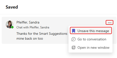 Once I am done with that message, I can click on the ellipsis and Unsave this message so that it goes away:
