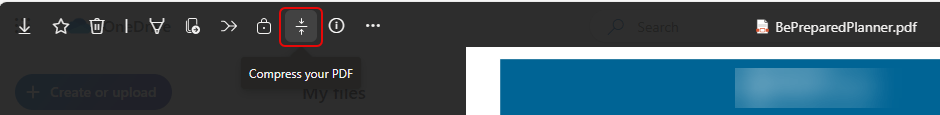 In this example, I have a PDF file open in the browser from OneDrive. To compress the file, I click on the Compress your PDF icon: