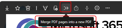 In this example, I have a PDF file titled PowerShell And Microsoft 365.pdf, and I want to merge it with another PDF file. I click on the Merge PDF pages into a new PDF icon: