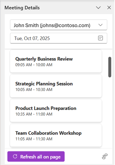 - The Refresh all on page button in the Meeting Details pane will be removed.
