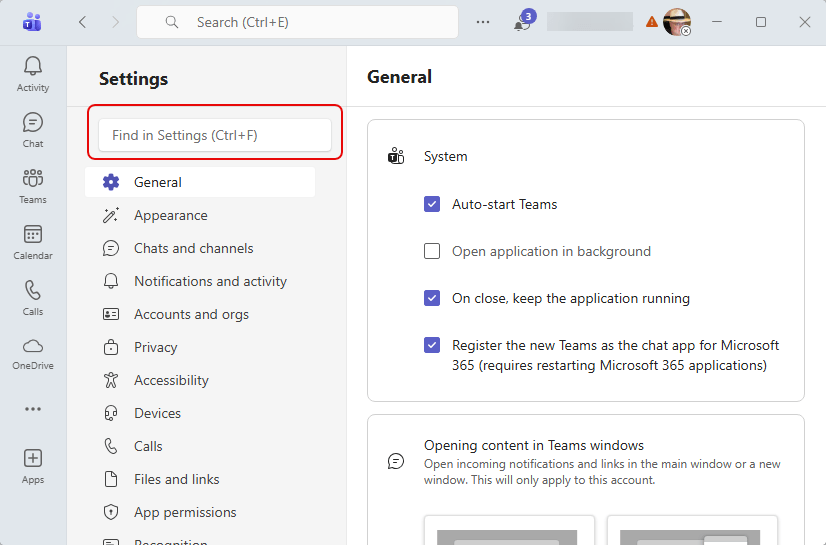 Have you ever gone into the Settings for Microsoft Teams to change something, and found yourself clicking through every single option looking for what you’re after? Now you can just search for the option using the Settings search. Here’s what that looks like:
