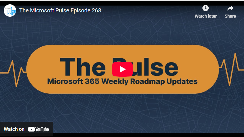 Episode 268 of the Microsoft 365 Pulse Roadmap webcast is now out on YouTube. Join Tamara Bredemus and Thomas Duff as we cover this week’s updates.