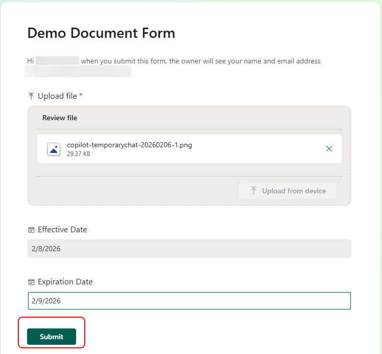 - Anyone in the organization should be able to use the link to enter data, even without access to the document library.