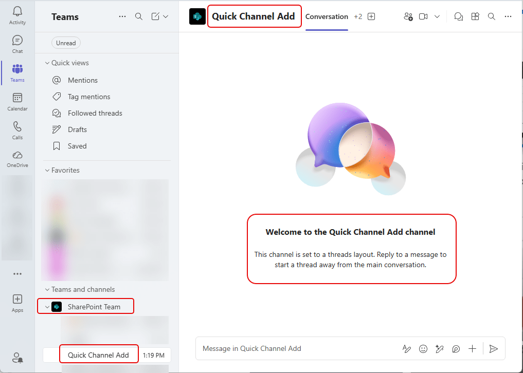 And finally, your channel is created and Teams takes you to that channel. It is now ready for use: