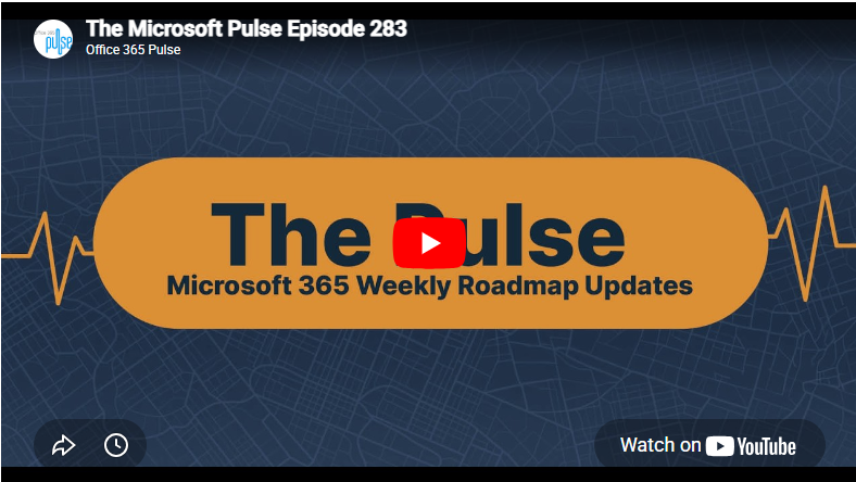 Episode 283 of the Microsoft 365 Pulse Roadmap webcast is now out on YouTube. Join Tamara Bredemus, Matthew Ruderman, and Thomas Duff as we cover this week’s updates.