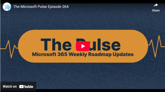 Episode 263 of the Microsoft 365 Pulse Roadmap webcast is now out on YouTube. Join Tamara Bredemus and Thomas Duff as we cover this week’s updates.